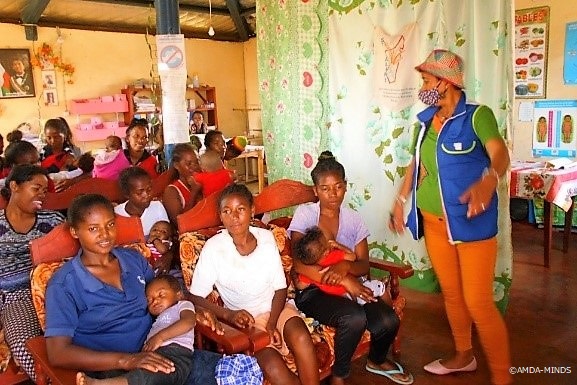そんなのどかな風景とは裏腹に、子どもたちの栄養状態はとても深刻です。例えばこの2村で実施した調査によると、3歳未満児の実に44.5%が発育阻害であり、その背景には、授乳方法や食生活に課題があることも明らかになりました。発育阻害とは、慢性的な栄養不良により発育が遅れ、年齢に対して身長が著しく低い状態にあることを意味します。慢性栄養不良は脳の発達にも大きな影響を与えます。そこでAMDA-MINDSは、現地で栄養改善活動の経験を持つNGO「ASOS(アソス)」と連携して、子どもの栄養改善に向けた活動を2020年1月に開始しました。